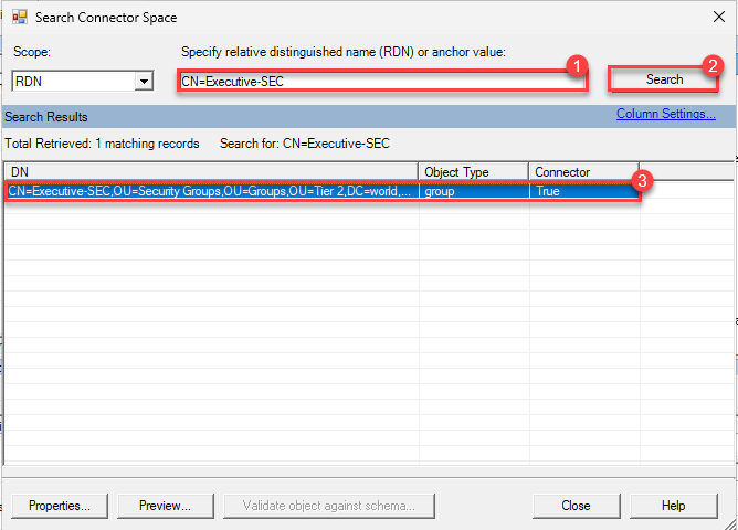 Search for the group in this example CN=Executive-SEC, press search and double click the search object.
