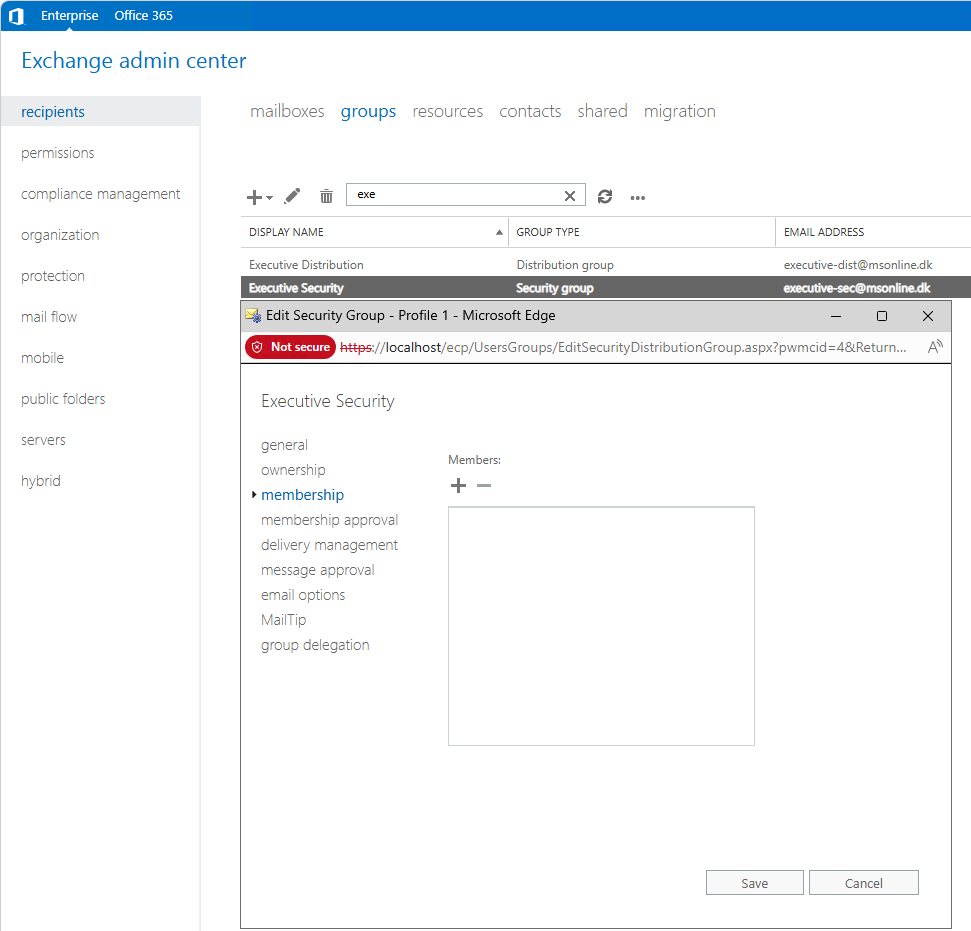 This is where you currently have to manage these groups, in your on-premises Exchange admin center or Active Directory.
